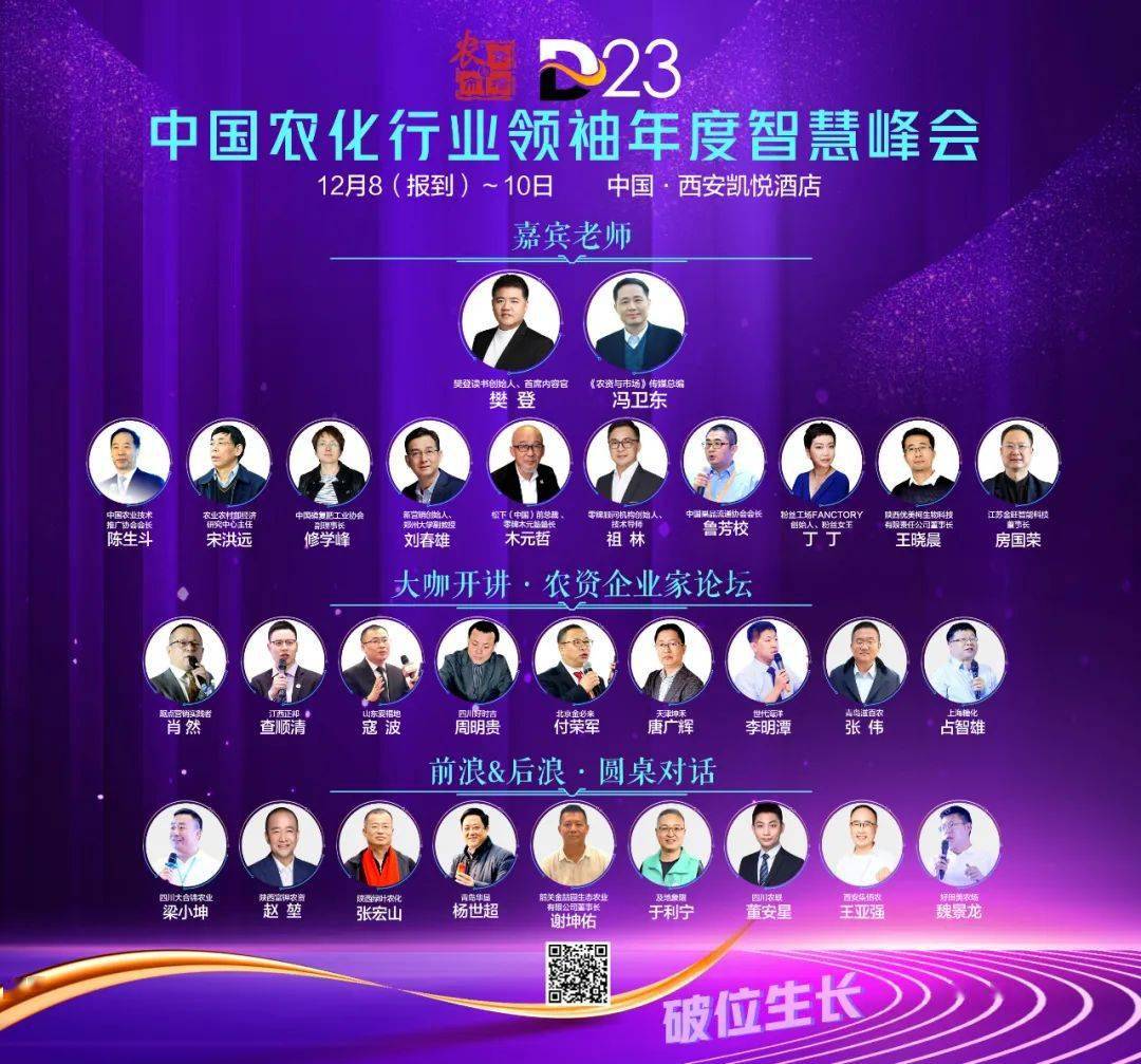 不破不立,破位生長,正是當(dāng)下企業(yè)應(yīng)對不確定性環(huán)境的發(fā)展邏輯。基于此,D23中國農(nóng)化行業(yè)領(lǐng)袖年度智慧峰會以“破位生長”為主題,12月8~10日,由《農(nóng)資與市場》傳媒主辦,金旺智能總冠名的D23農(nóng)化行業(yè)領(lǐng)袖年度峰會在古都文化名城西安召開。