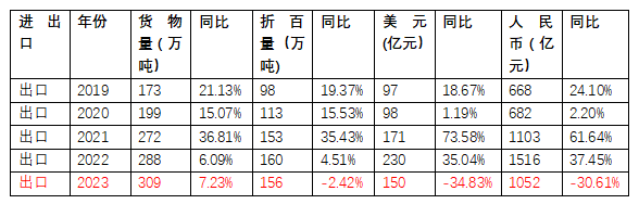 2021—2023年中國農藥出口數據統計