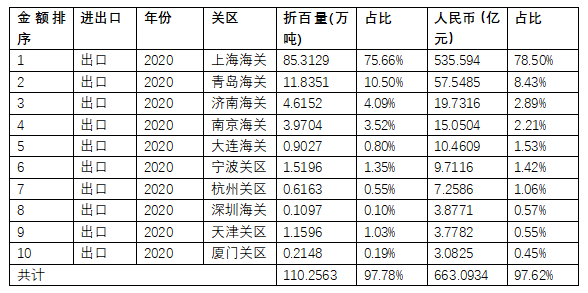 表8 2020年中國農藥出口前十的關區數據分析