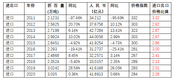 表3 2011—2020年中國農藥進口數據分析