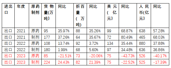 表4 2011—2020年中國原藥出口數據分析