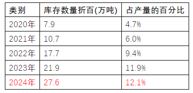 原藥企業庫存增多。近5年,農藥原藥庫存逐年增加,2024年農藥庫存數量達到27.6萬噸,占當年產量的12.1%,農藥的生產過剩問題初步顯現。