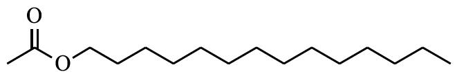 (2)十四醇乙酸酯,tetradecyl acetate,CAS登錄號(hào):638-59-5,分子式:C16H32O2,結(jié)構(gòu)式如下: