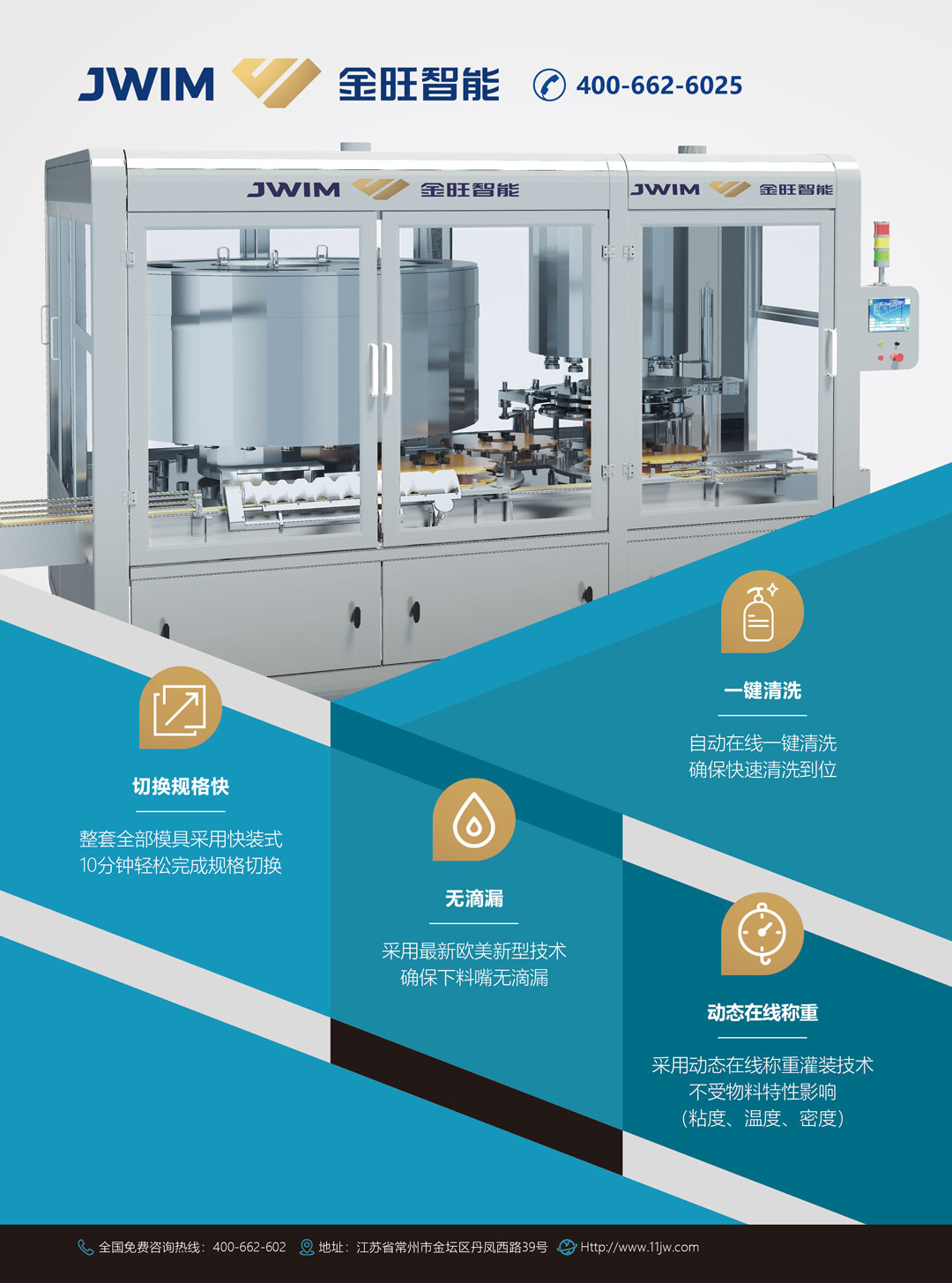 1.動態在線稱重:采用動態在線稱重灌裝技術,不受物料特性(粘度、溫度、密度)影響。